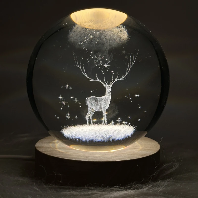 چراغ خواب مدل گوی شیشه ای 3D طرح گوزن