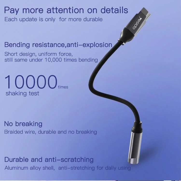 مبدل USB-C به جک ۳.۵ میلی متری یسیدو مدل YAU19 طول ۵.۵ سانتیمتر