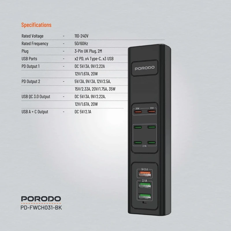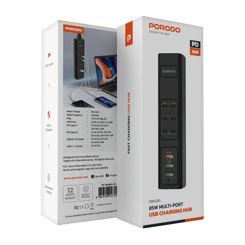 شارژر باتری موبایل پرودو مدل 85W Multi-Port USB Charging HUB