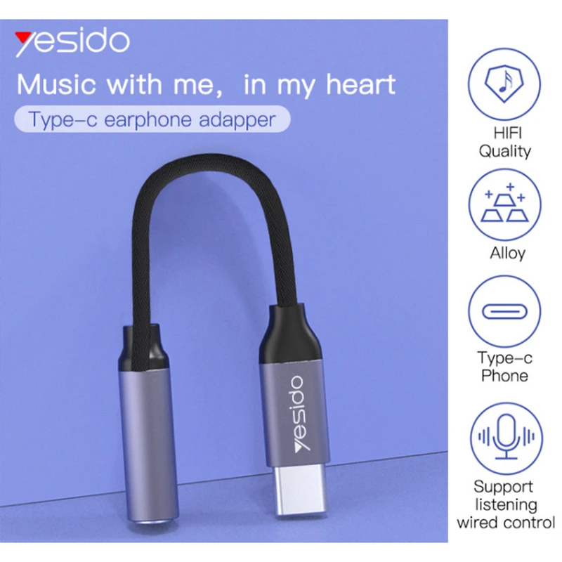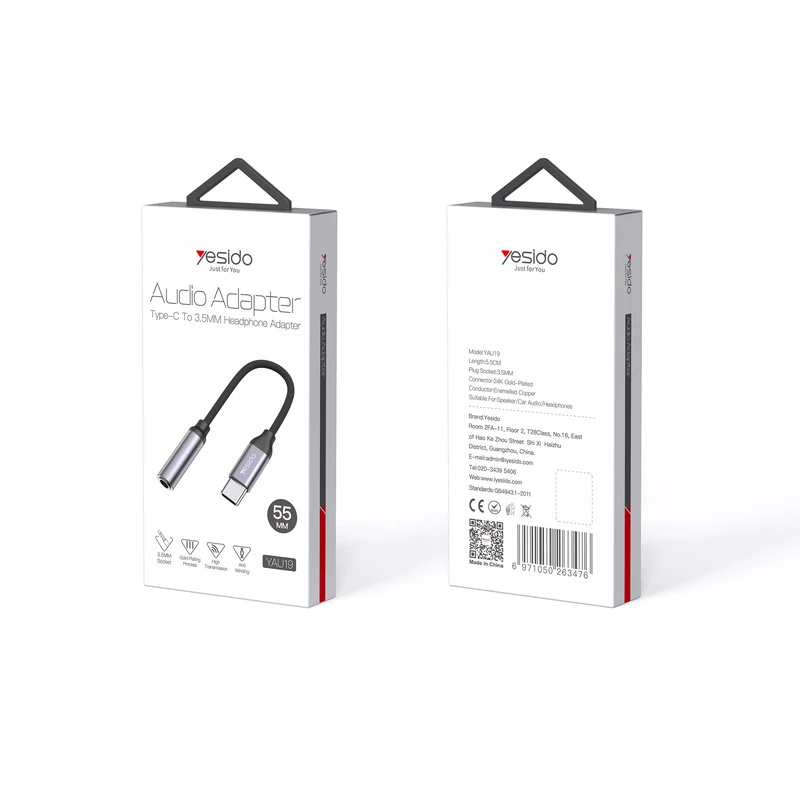 مبدل USB-C به جک ۳.۵ میلی متری یسیدو مدل YAU19 طول ۵.۵ سانتیمتر