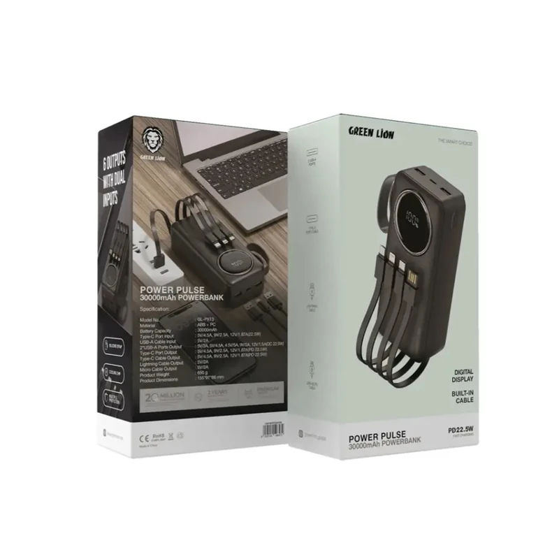 پاور بانک گرین لاین مدل Power Pulse ظرفیت 30000 میلی آمپر ساعت