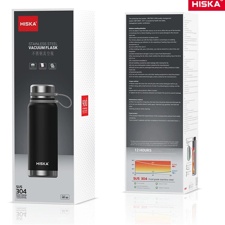 فلاسک سفری استیل هیسکا مدل HR-80 ظرفیت ۱ لیتر