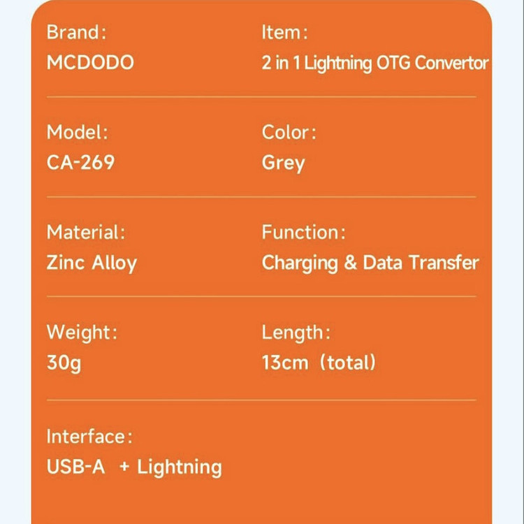 مبدل لایتنینگ به USB OTG/لایتنینگ مک دودو مدل CA-2690 یک ابزار کاربردی برای کاربران دستگاههای اپل است. این مبدل با ارائه دو پورت (USB-A و لایتنینگ) امکان اتصال همزمان فلش مموری، کیبورد، ماوس و دیگر لوازم جانبی را فراهم میکند، در حالی که دستگاه شما را نیز شارژ میکند. طراحی جمعوجور، بدنه مقاوم از آلیاژ روی و کابل بافتهشده، این محصول را به گزینهای ایدهآل برای استفاده روزمره تبدیل کرده است.