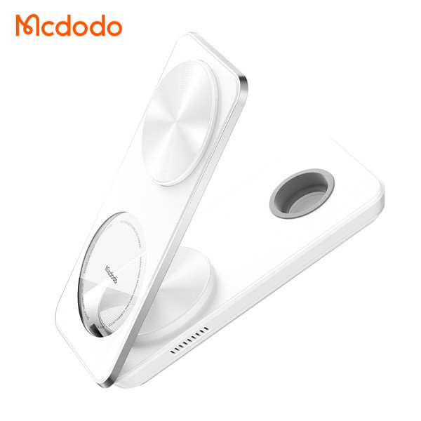 شارژر بیسیم مک دودو مدل CH-115 یک ایستگاه شارژ بیسیم ۳ در ۱ است که بهطور خاص برای کاربران دستگاههای دارای استاندارد Qi طراحی شده است. این شارژر با توان خروجی مجموعاً ۲۵ وات، امکان شارژ همزمان گوشی هوشمند، ساعت هوشمند و هدفون بیسیم را فراهم میکند. طراحی تاشو و جمعوجور آن، حمل و استفاده از آن را در منزل یا سفر آسان میسازد.