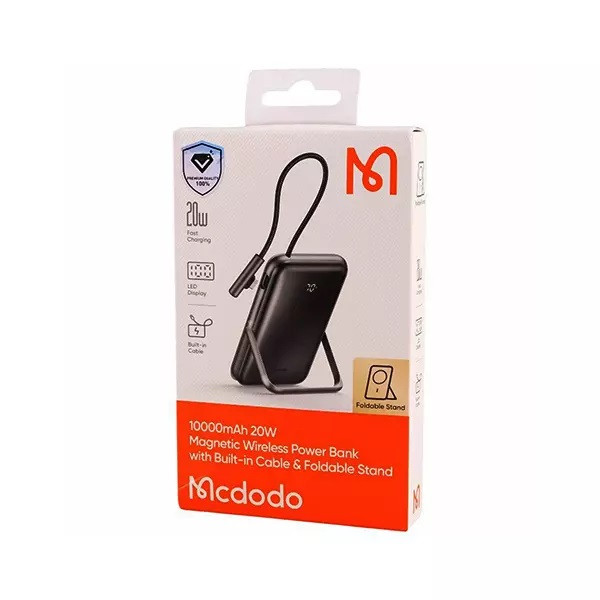 پاوربانک مک دودو مدل MC-1811 یک پاوربانک قدرتمند، خوشساخت و چندکاره است که با ظرفیت 10000 میلیآمپر ساعت، نیاز شارژ روزمره شما را بهخوبی تأمین میکند. این پاوربانک مجهز به قابلیت شارژ سریع باسیم با توان ۲۰ وات و شارژ بیسیم با توان ۱۵ وات است. طراحی مگنتی این محصول، اتصال ایمن به پشت گوشیهای سازگار با MagSafe را ممکن میسازد و پایه پشتی آن امکان استفاده از گوشی در حالت استند را فراهم میکند. مک دودو MC-1811 مناسب برای استفاده روزانه، سفر و حتی میز کار است.