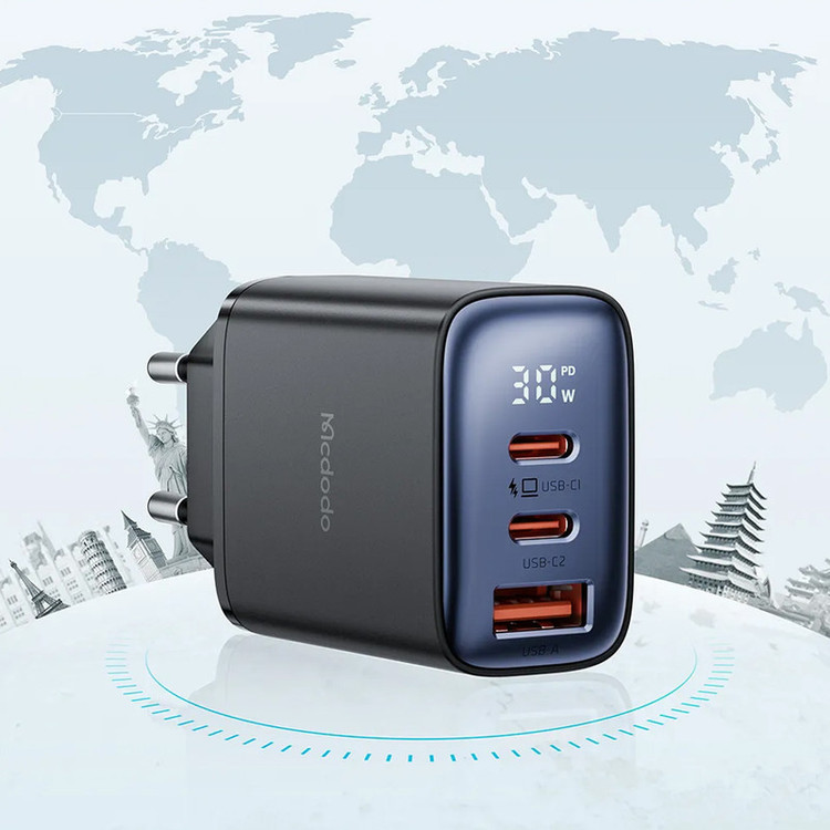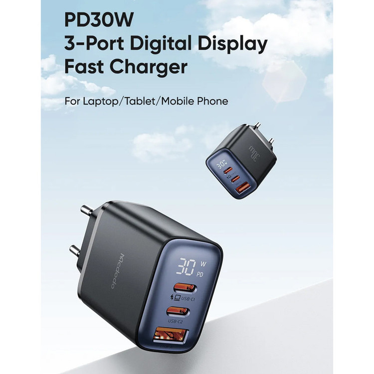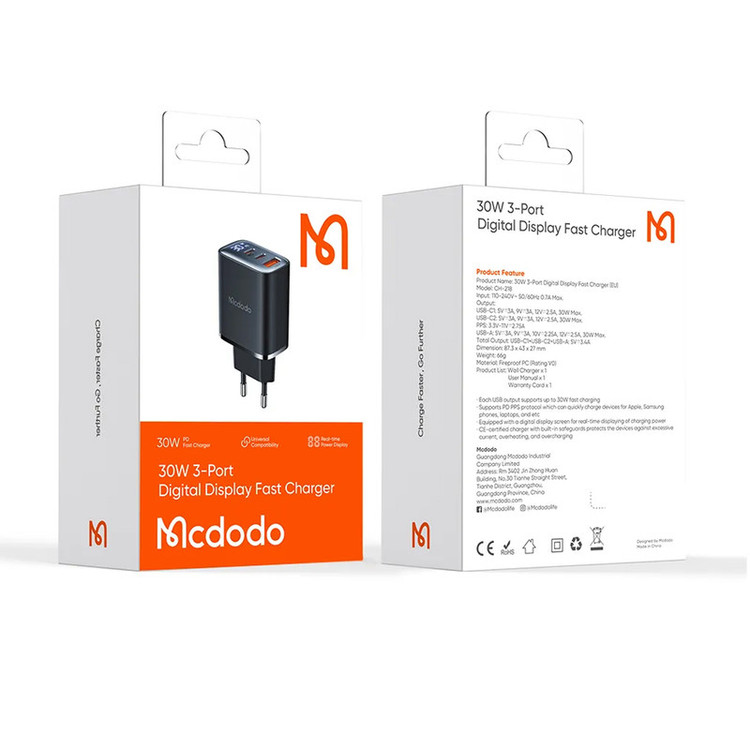 شارژر دیواری 30 وات مک دودو مدل CH-2180 یک انتخاب ایده آل برای کاربرانی است که به دنبال شارژ سریع، ایمن و همزمان چند دستگاه هستند. این شارژر با طراحی مدرن و نمایشگر دجیتال، تجربه ای متفاوت از شارژ ارائه میدهد.