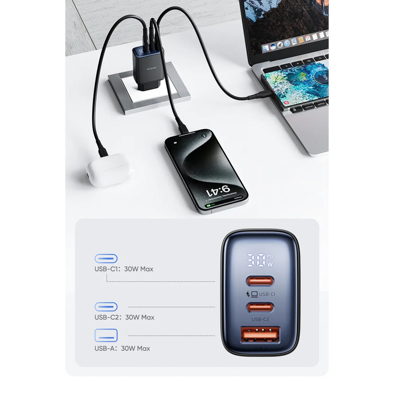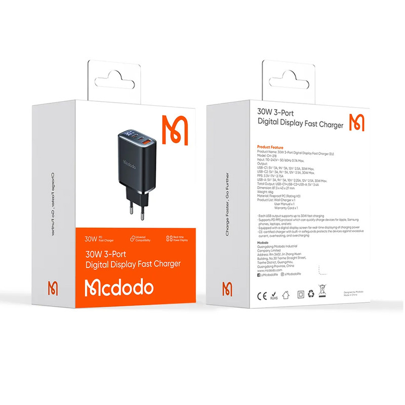 شارژر دیواری 30 وات مک دودو مدل CH-2180 یک انتخاب ایده آل برای کاربرانی است که به دنبال شارژ سریع، ایمن و همزمان چند دستگاه هستند. این شارژر با طراحی مدرن و نمایشگر دجیتال، تجربه ای متفاوت از شارژ ارائه میدهد.