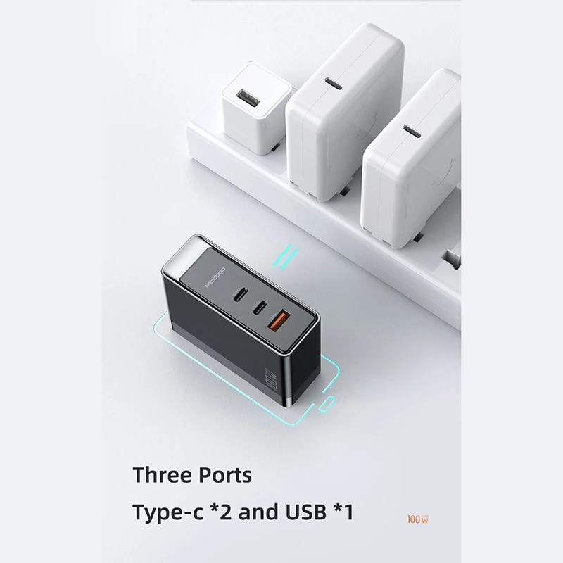 شارژر دیواری مکدودو مدل CH-8101 Pro با توان خروجی ۱۰۰ وات و فناوری GaN، گزینهای ایدهآل برای شارژ سریع و همزمان دستگاههای مختلف مانند لپتاپ، تبلت و گوشی هوشمند است. این شارژر دارای دو پورت USB-C و یک پورت USB-A میباشد که امکان شارژ سه دستگاه بهصورت همزمان را فراهم میکند. طراحی جمعوجور و قابلیت تعویض دوشاخهها (EU/UK/US) این شارژر را به همراهی مناسب برای سفرهای بینالمللی تبدیل کرده است.