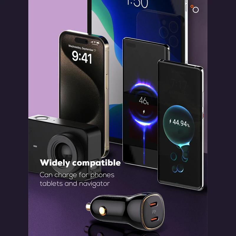 شارژر فندکی 60 وات الدینیو مدل C104 همراه با کابل USB-C