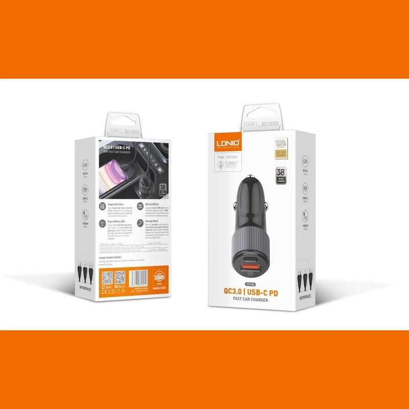 شارژر فندکی الدینیو مدل C510Q با کابل تایپ سی