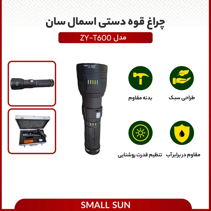 چراغ قوه دستی اسمال سان مدل ZY-T600 با نور LED و شدت ۵۰۰۰ لومن