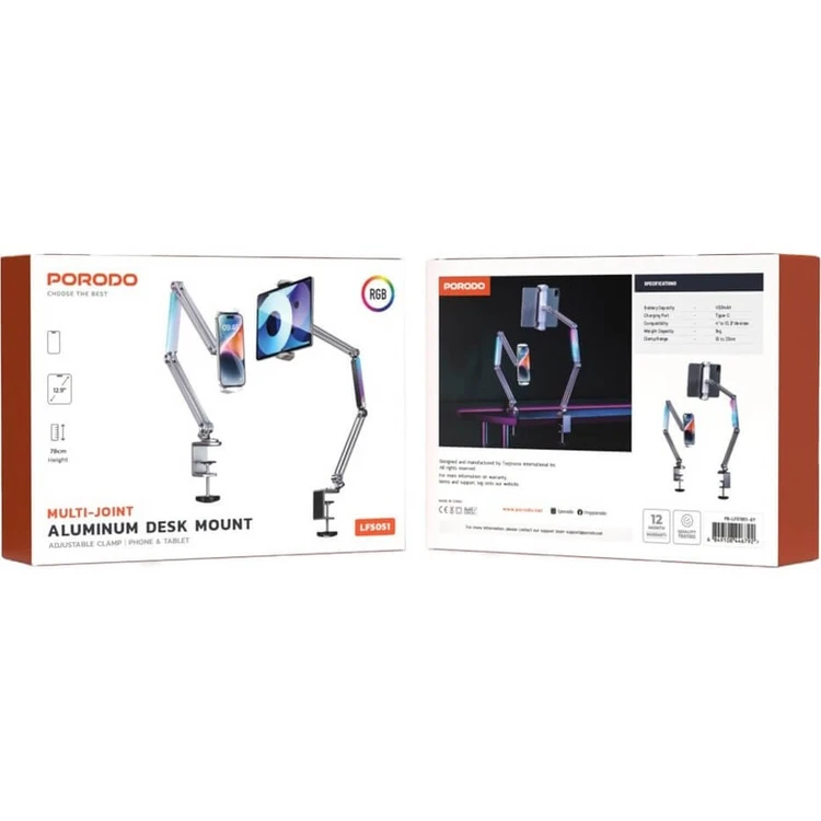 پایه نگهدارنده موبایل و تبلت پرودو مدل PD-LFST051 با بازوی متحرک و نور RGB