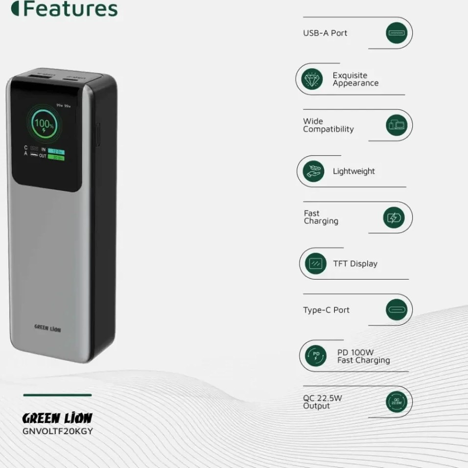 پاوربانک گرین مدل Voltura ظرفیت ۲۰۰۰۰ میلی آمپر ۱۰۰ وات